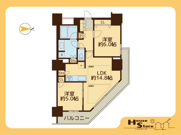 | 間取 | 2LDK + LDK14.8×1・洋6×1・洋5×1 | ||
