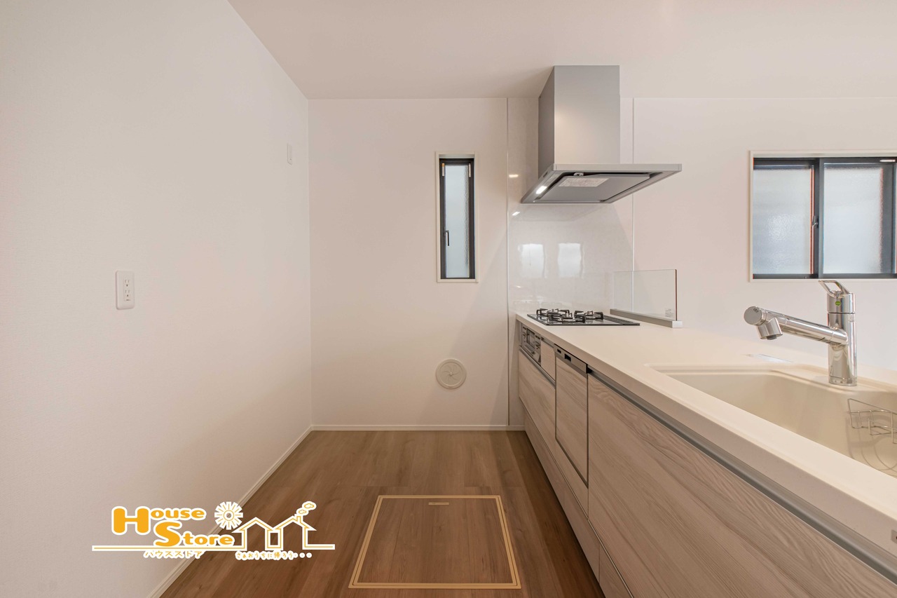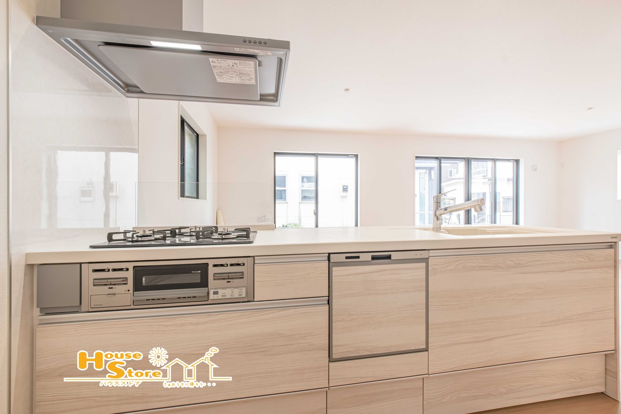 機能性に優れたキッチンは、充実した設備で快適な調理をサポート。統一感あるデザインと広いワークトップで、毎日の料理時間も心地よく過ごせます。