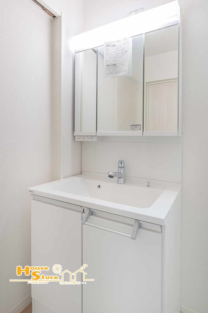 洗面台は、身だしなみを整えやすい三面鏡に収納を備えた機能的な設計。収納力があるため整理整頓もしやすく、快適でスッキリと使えます。
