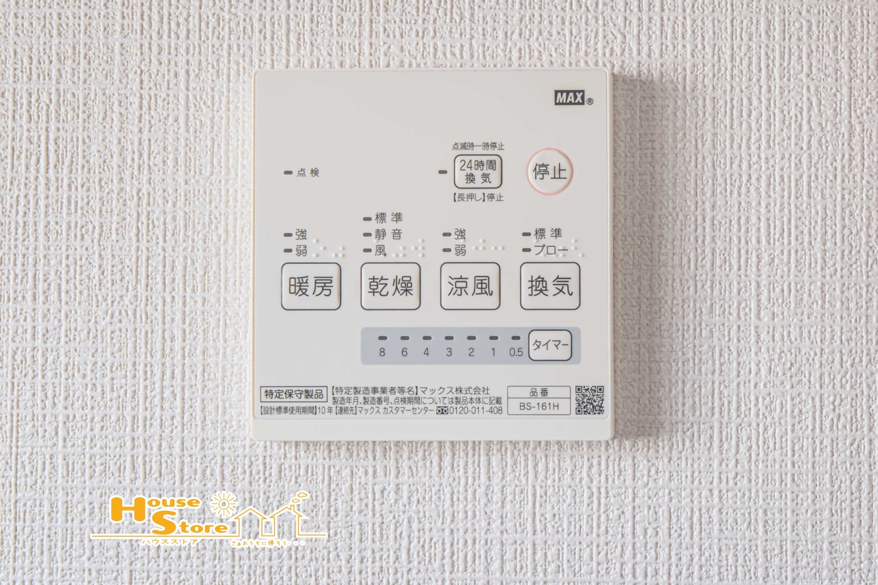 浴室換気乾燥暖房機を備え、雨の日の洗濯物乾燥や冬場の入浴前暖房にも便利。季節を問わず快適にお使いいただける嬉しい設備です。