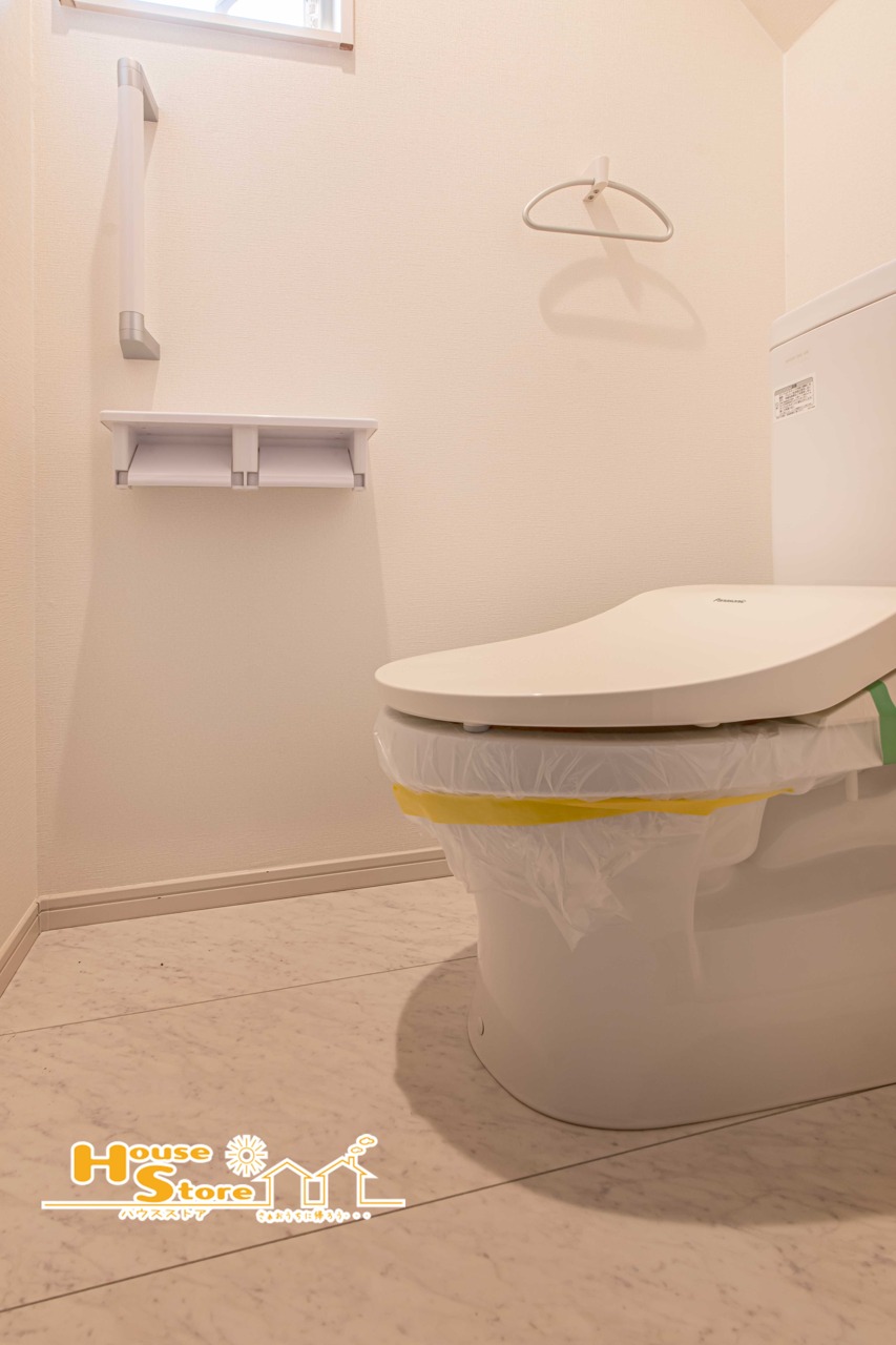 温水洗浄便座を備えた、清潔感のある快適なトイレ空間。小窓付きで自然換気もしやすく、毎日気持ちよくお使いいただけます。