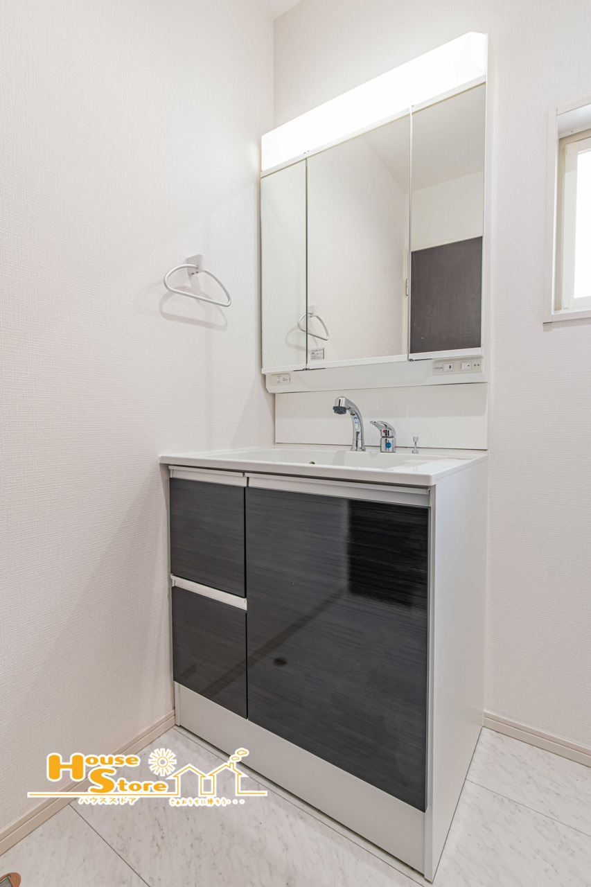 三面鏡付きの洗面台は、毎日の身支度を快適にサポート。収納力にも優れ、生活感を抑えた整ったサニタリー空間を叶えます。