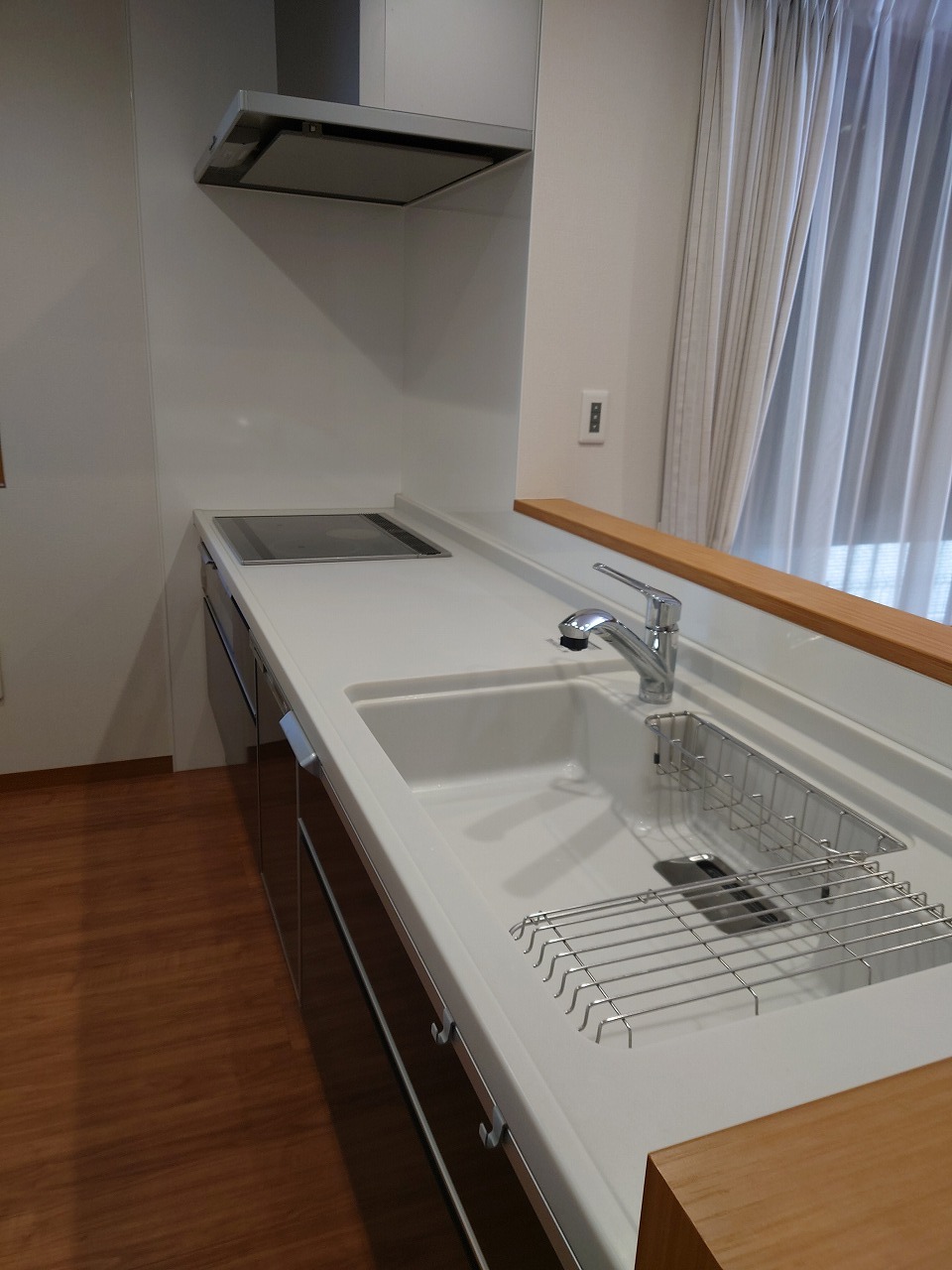 ダイニングと向き合う対面式キッチンは、家事動線を効率化し、配膳や片付けを快適に。日常のひとときも心地よく過ごせる空間です。