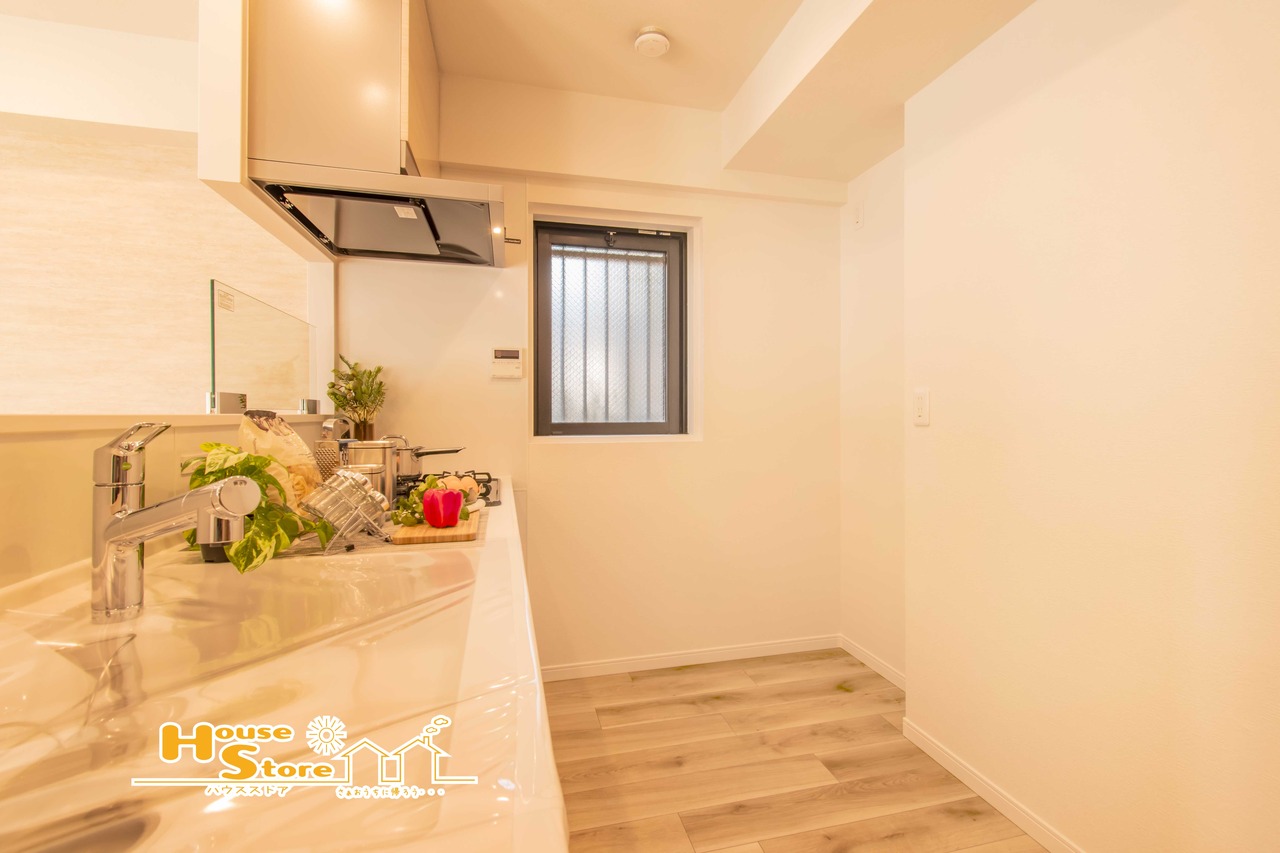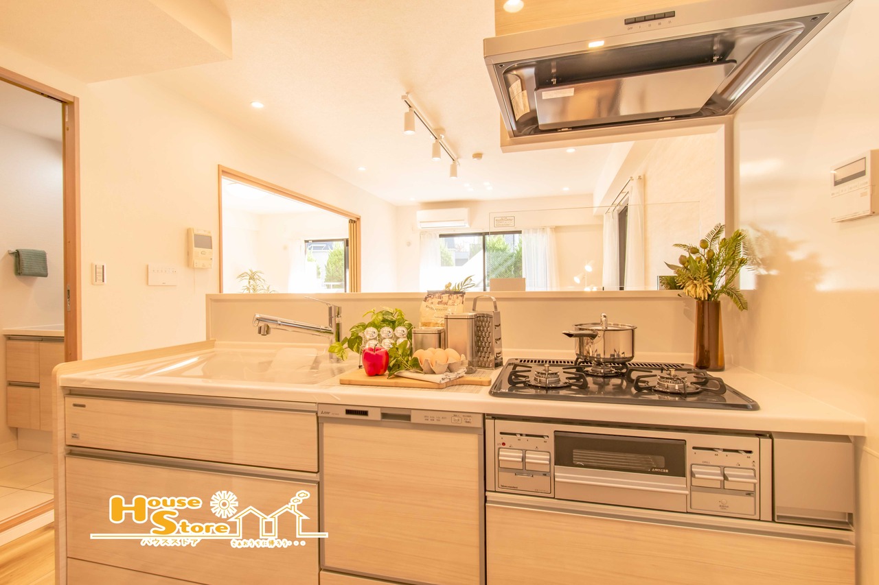 対面式キッチンは食器運びもスムーズになりリビングとの動線も良好になります。リビングで遊ぶお子様の様子を見守ることもできるためファミリー層にも人気の仕様です。