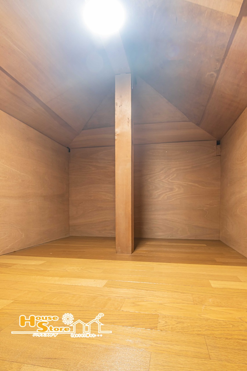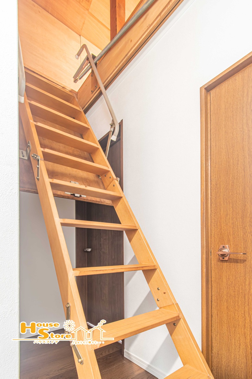 屋根裏収納へと続く緩やかな階段は上り下りしやすく、大きなお荷物の出し入れの際にも安心。幅広く活用できる便利な収納スペースです。