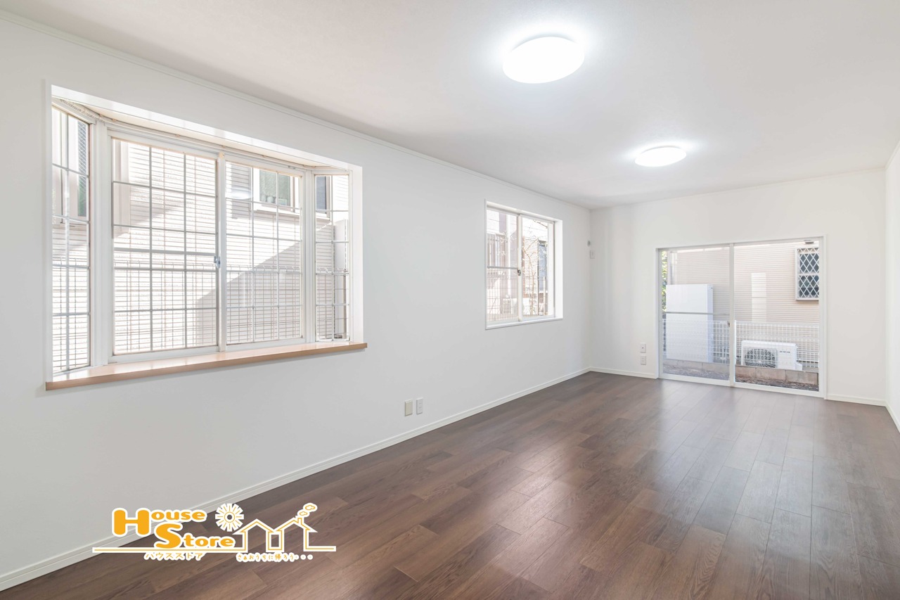 南向きの大きな窓からたっぷりの陽光が差し込む明るいリビング。自然とご家族が集まりたくなる、心地よく温かな団らん空間が広がります。