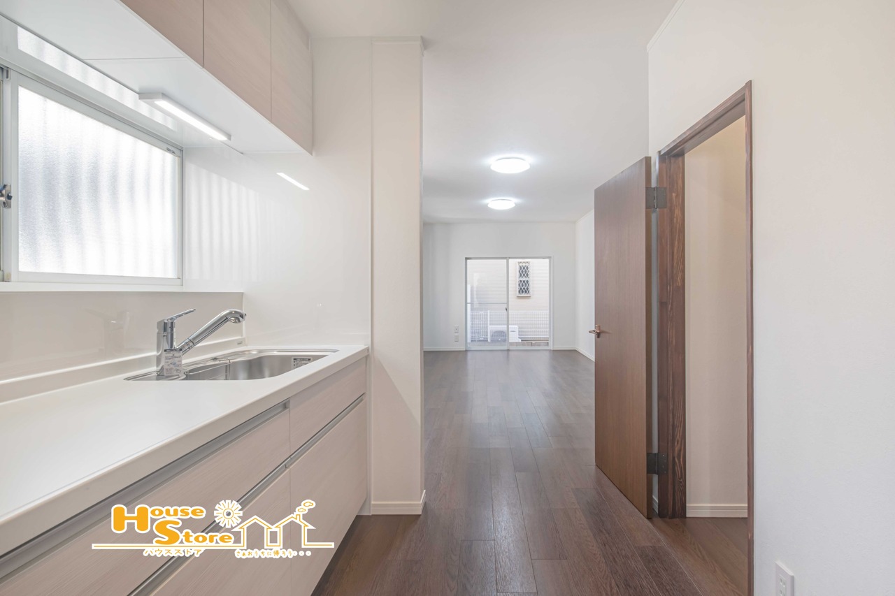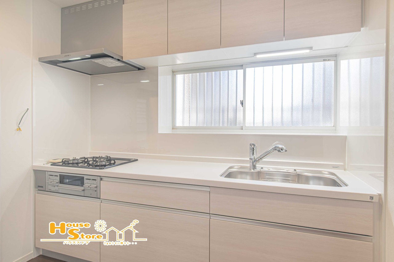 広々としたシンクで忙しい家事中でも窮屈さを感じにくい快適なキッチン。豊富な収納を備えているため、調理道具や食器もすっきり整理でき、使い勝手の良い空間です。