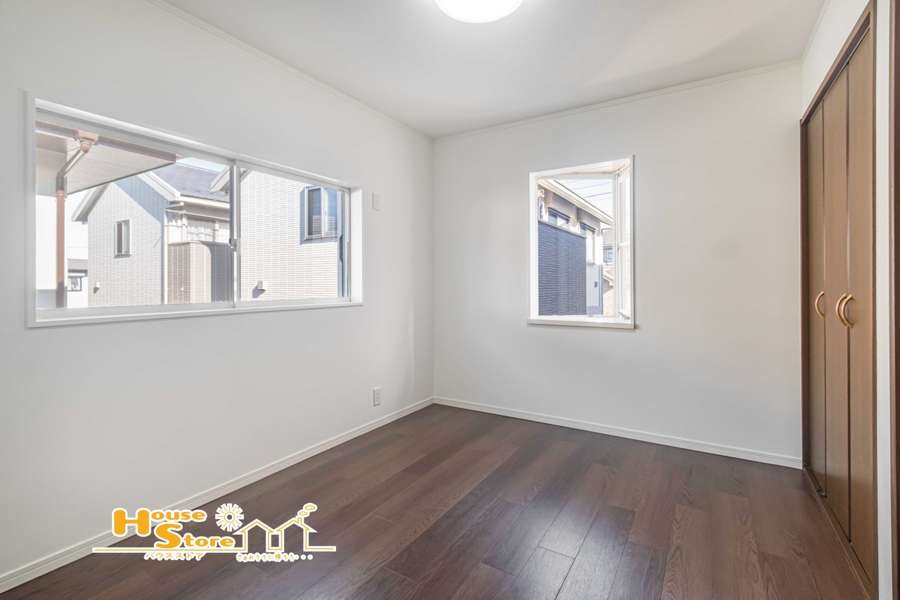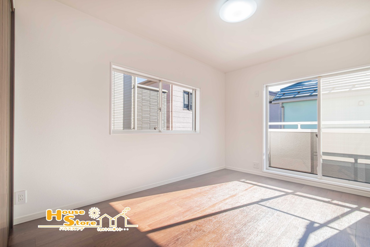 全居室2面採光の明るい洋室。南向きの大きな窓からはたっぷりの陽光が、東向きの窓からはさわやかな風の吹き抜ける過ごしやすいお部屋です。