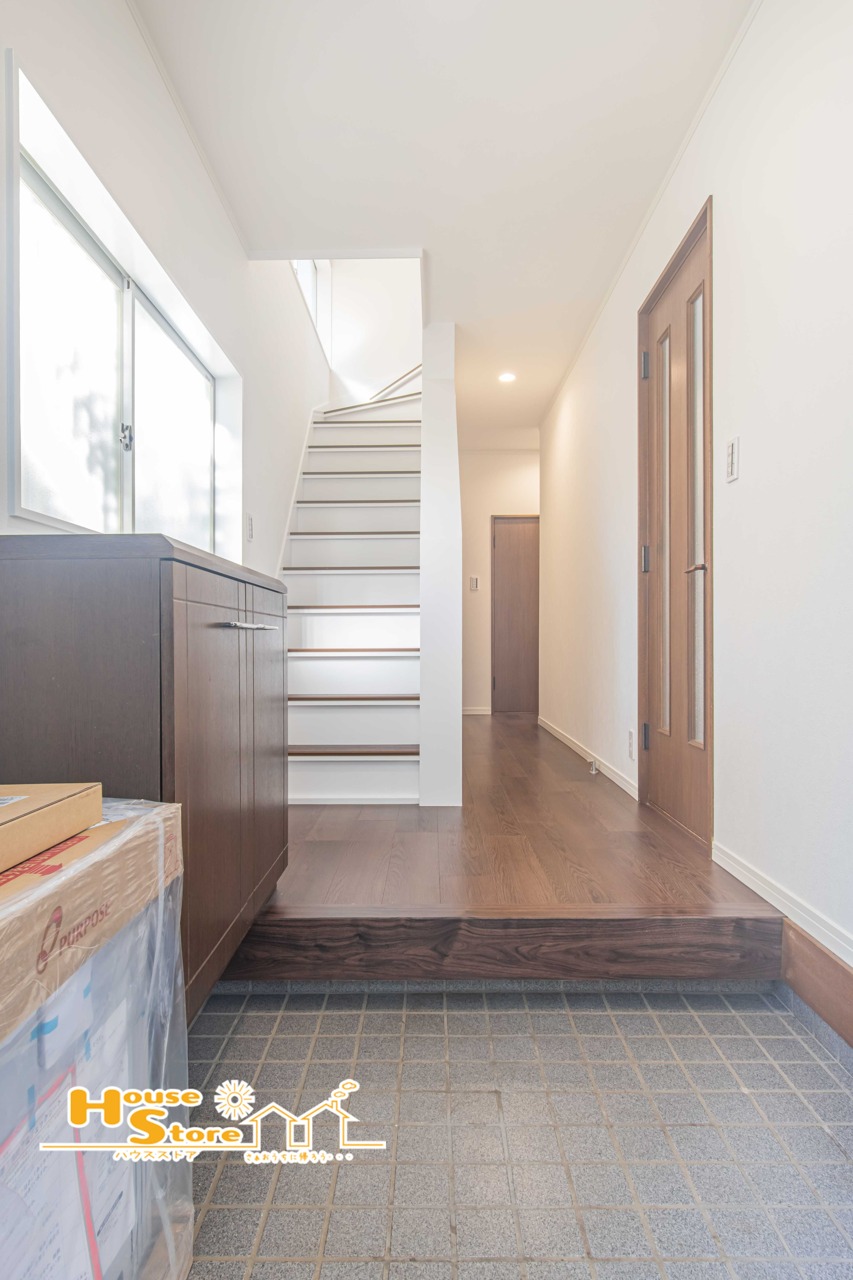 豊富な収納を備えた玄関。ご家族の靴や小物などをたっぷり収納できいつでもスッキリとした空間を保てます。