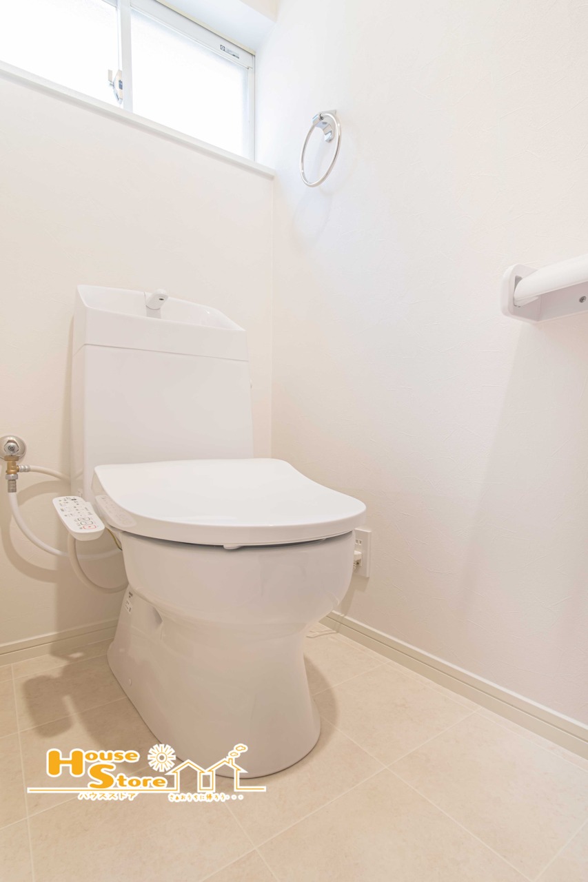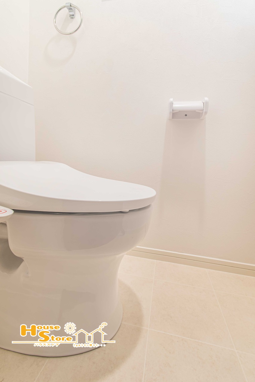 広々としたお手洗いは、窮屈さを感じることのない明るい空間。隅々までお掃除しやすい広さなのでいつでも清潔感を保つことが出来ます。