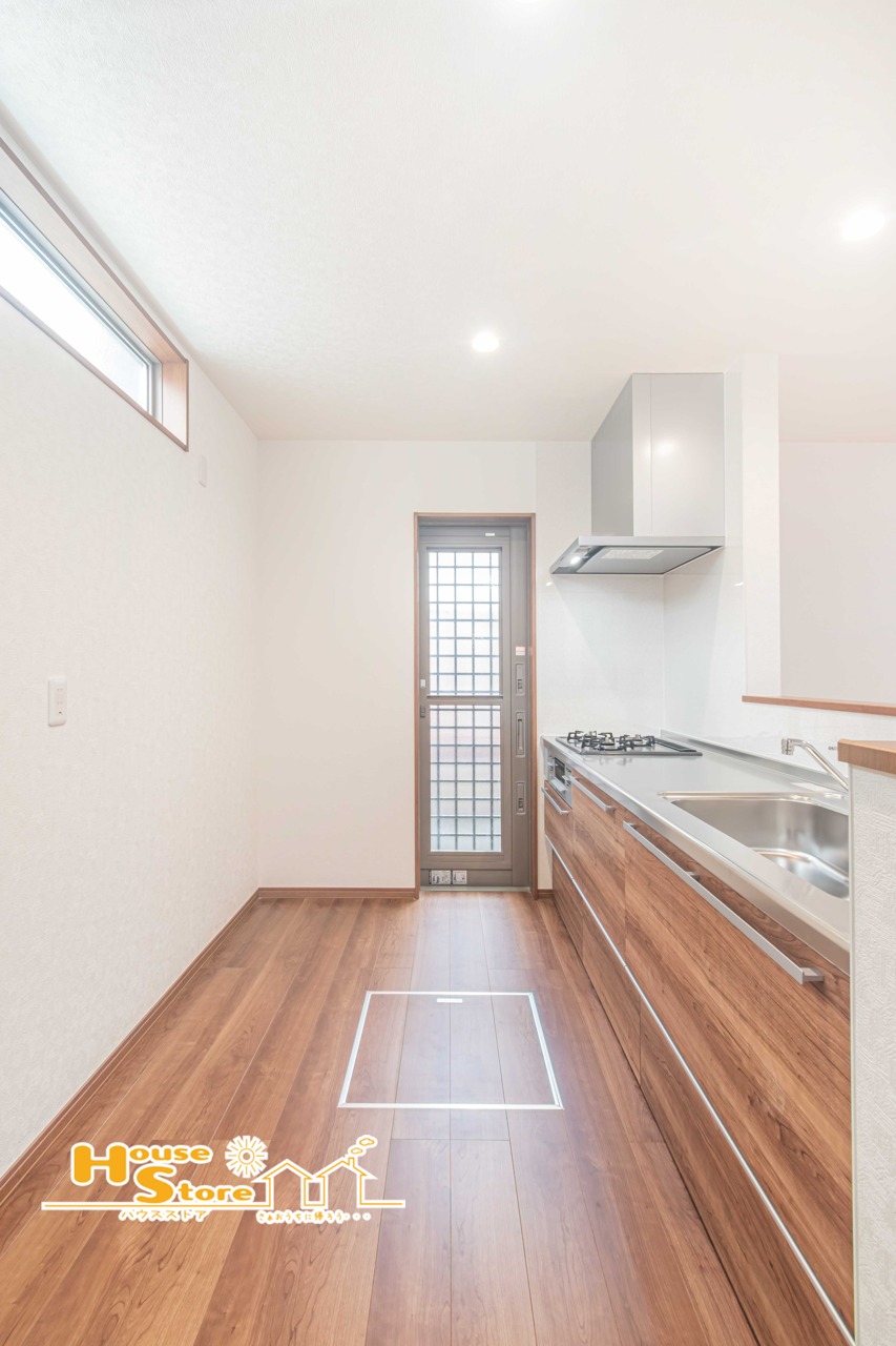 広々としたキッチンスペースはご夫婦やお子様とのお料理やお片付けにも最適です。勝手口によって風通しも確保しやすく空気の入れ換えや廃棄類の管理もしやすくなります。
