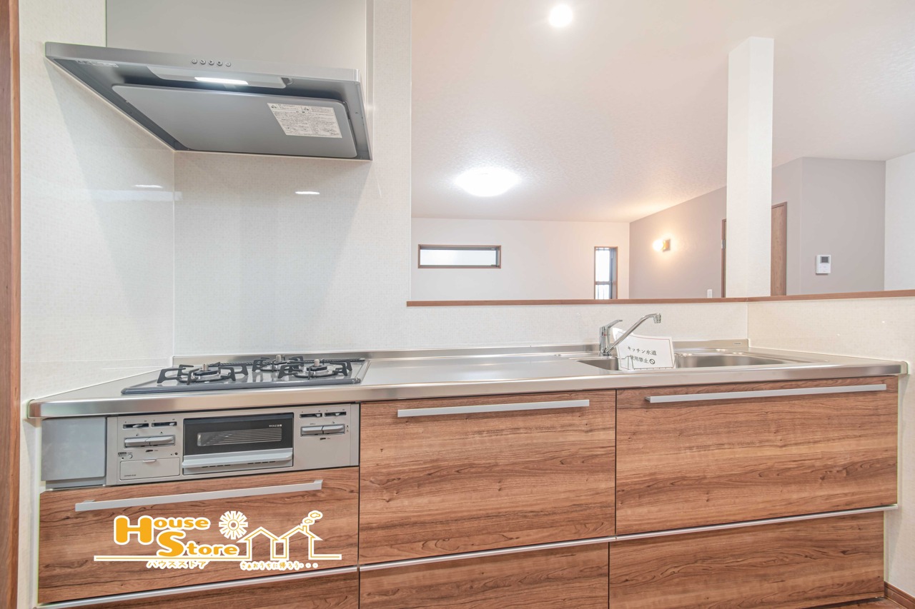 対面式キッチンは食器運びもスムーズになりリビングとの動線も良好になります♪リビングで遊ぶお子様の様子を見守ることもできるためファミリー層にも人気の仕様です。