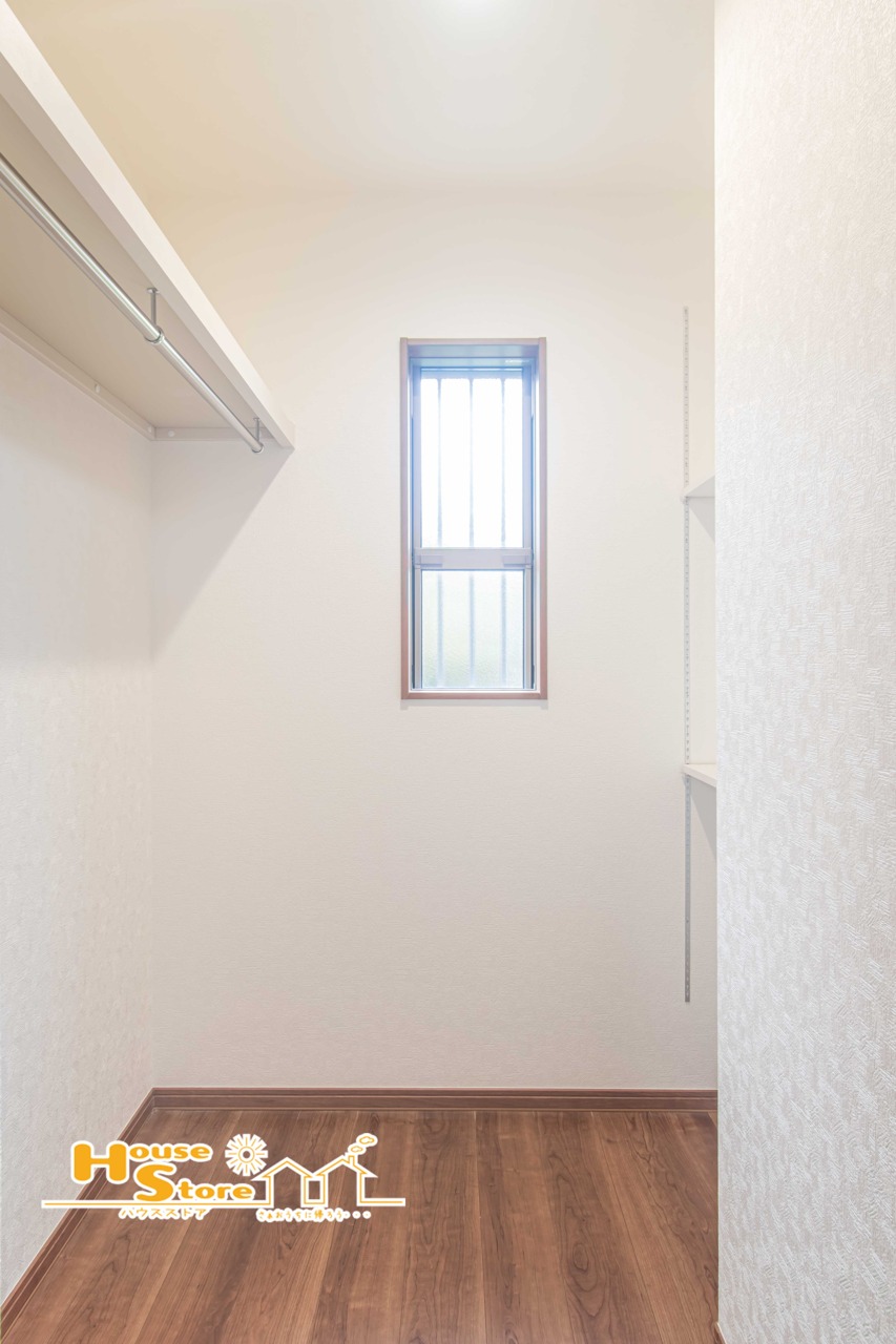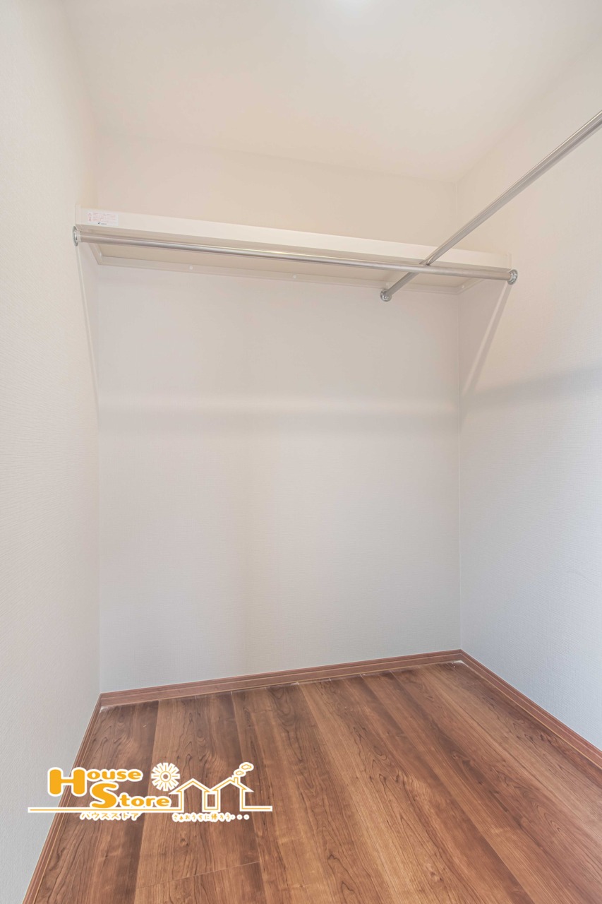 奥行きのあるウォークインクローゼットにはハンガーパイプが設置されており多くの衣類をスッキリ収納できます。シーズンごとに着なくなるコートやシワになりやすい衣服をキレイに収納できるのが魅力的です。
