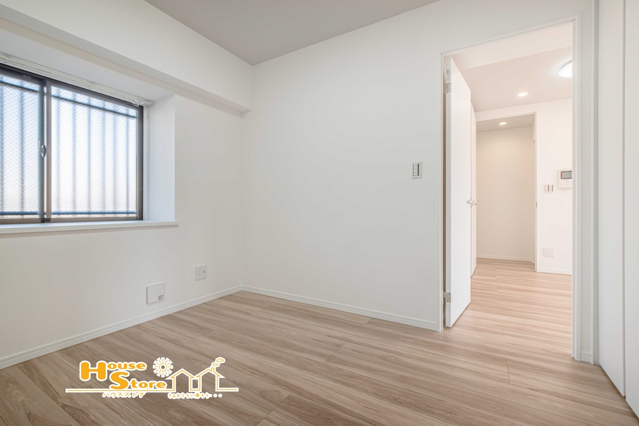 窓からやわらかな光が差し込む明るい洋室。陽当たりの良い心地よい空間で、寝室やプライベートルームとして快適にお使いいただけます。落ち着いた時間を過ごせる居住空間です。