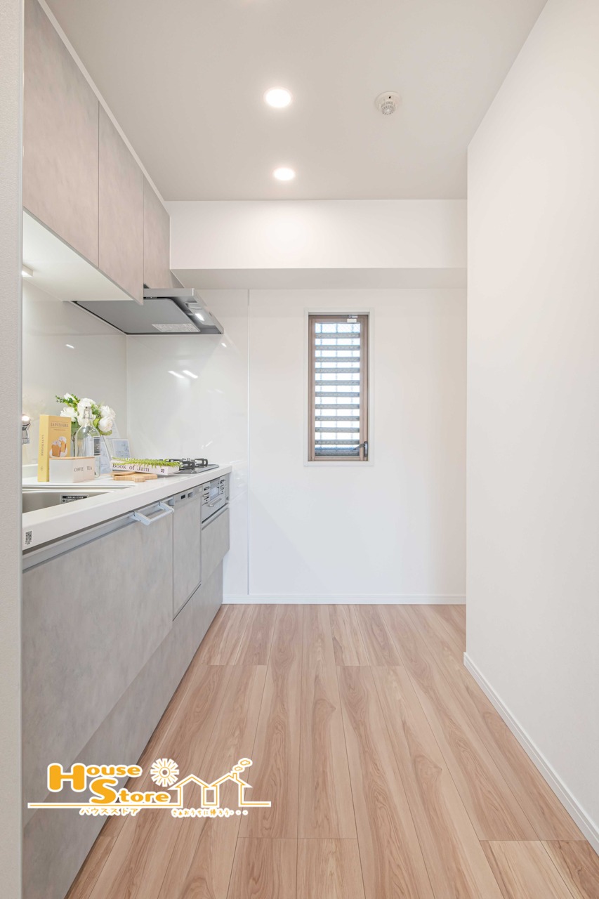 リビングと程よく区切られた独立型キッチン。生活空間と分かれているためお料理に集中しやすく落ち着いて家事を行える快適なキッチンスペース。