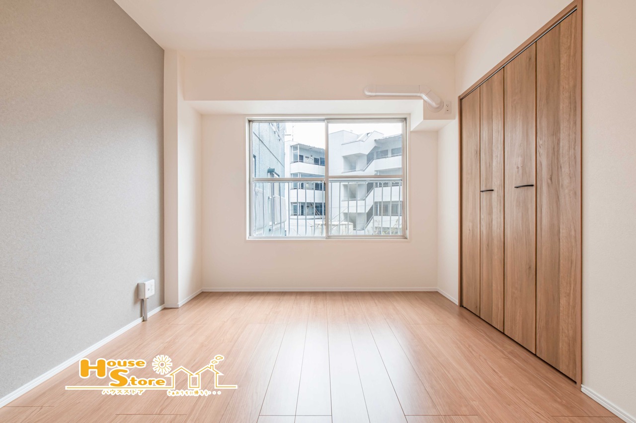 陽当たり良好で明るい洋室。大きな収納スペース付きで、お部屋もすっきり使え、快適なプライベート空間としてお過ごしいただけます。
