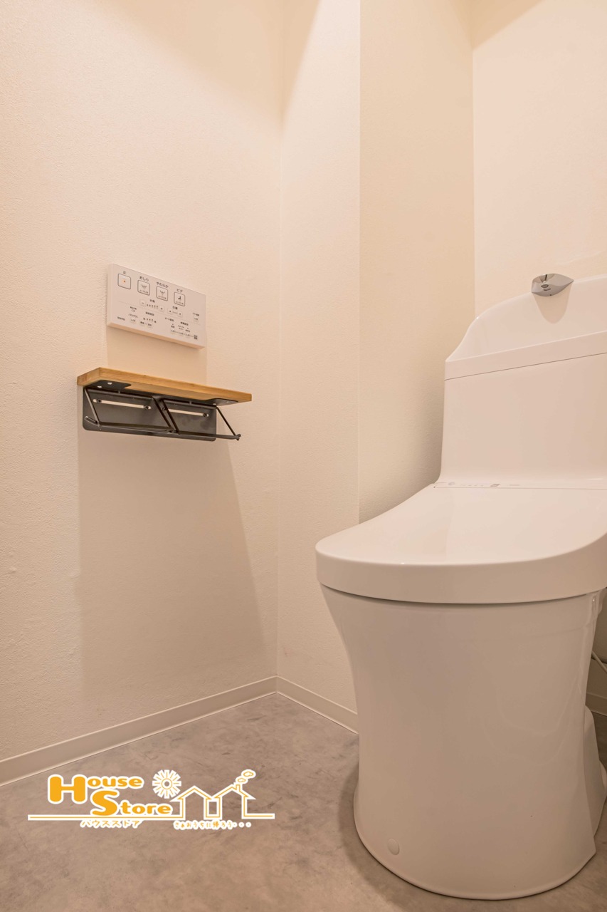 温水洗浄便座付きで快適にお使いいただけるトイレ。清潔感があり、気持ちよくお使いいただける空間です。